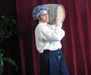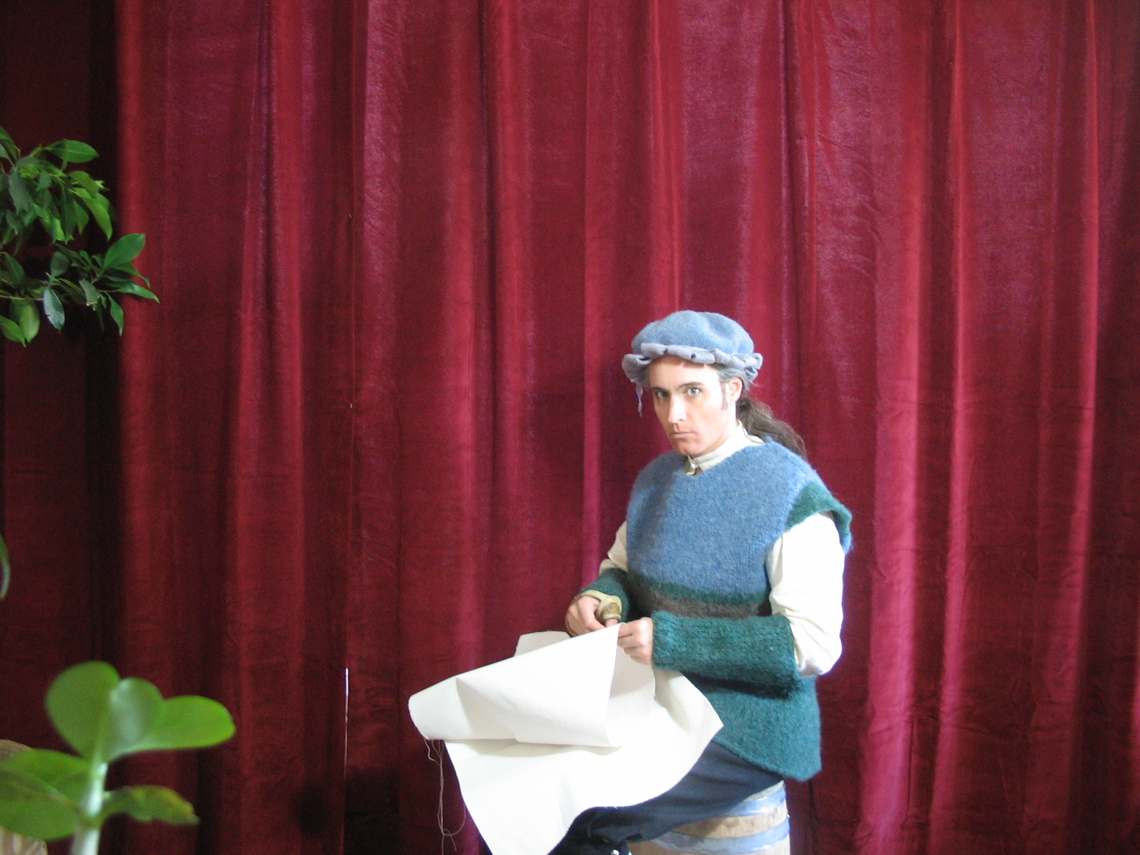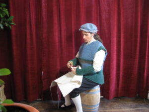 A character who might have served on the Mary Rose in His Majesty’s Navy. Linen shirt and pants, basic wool stocks, hat and doublet, (the previous two were knit and then felted) Every sailor knew how to sew, a neccessary skill for keeping the sails in good repair as well as keeping the sailor himself clothed. Wool coverings on the wrists were scoggers, on the ankles, hoggers, both very similar items for warmth without constricting movement.
