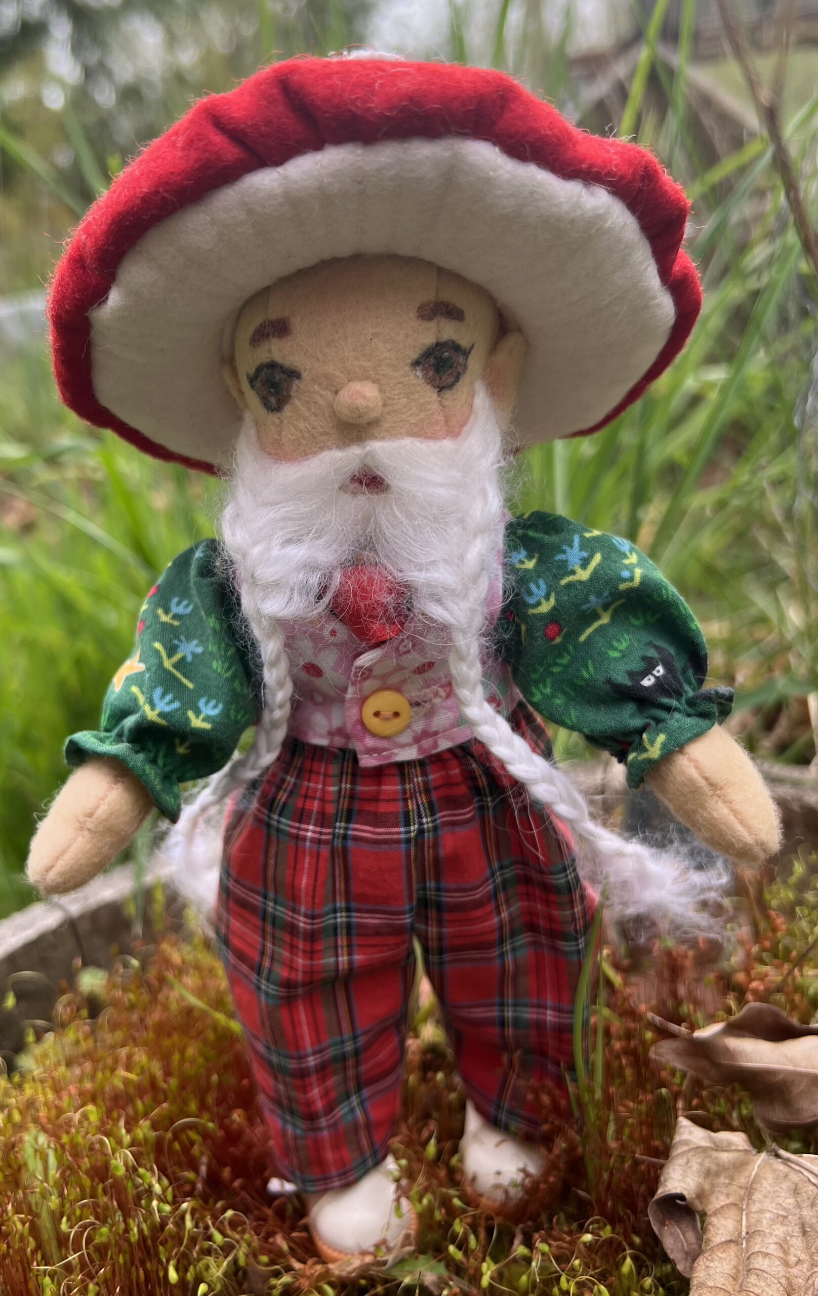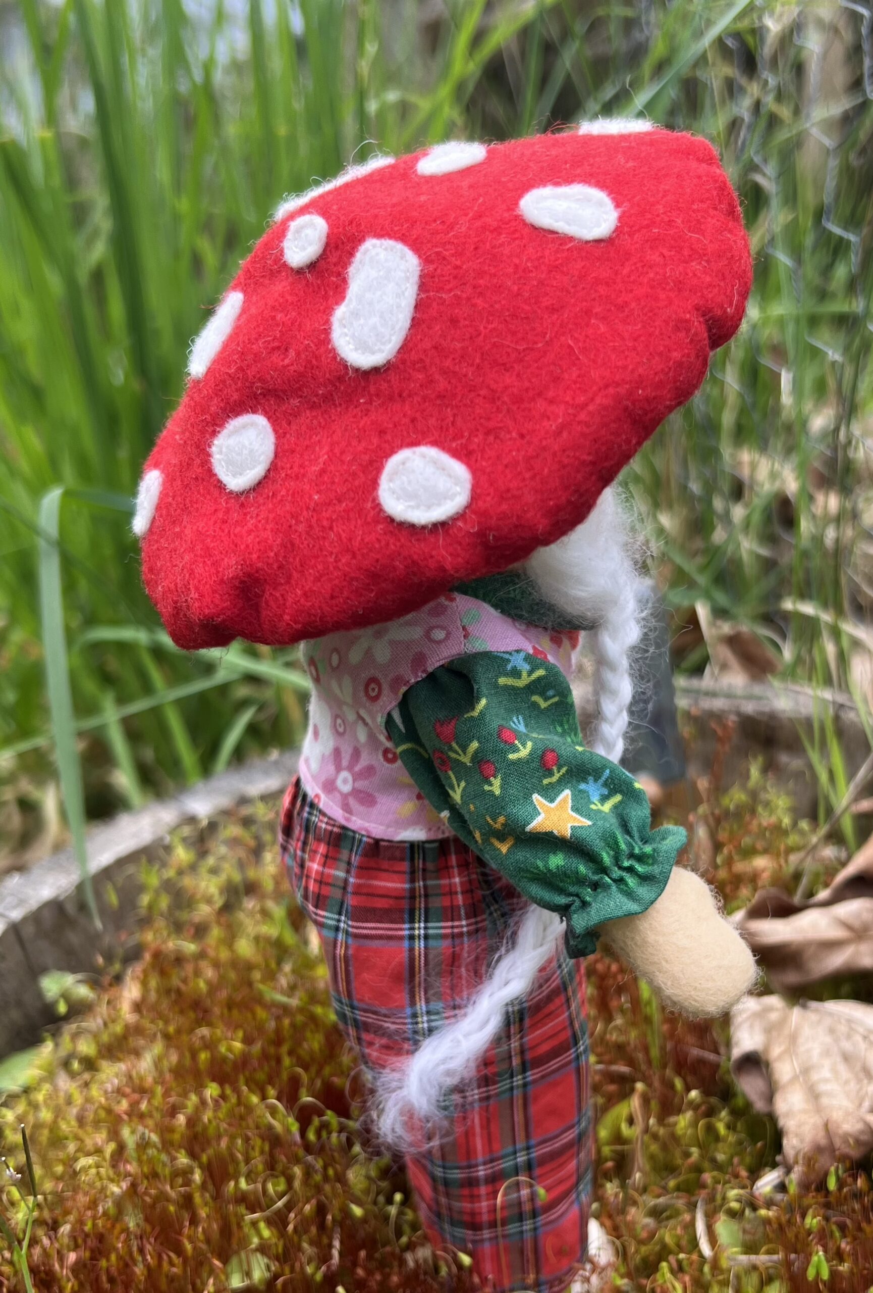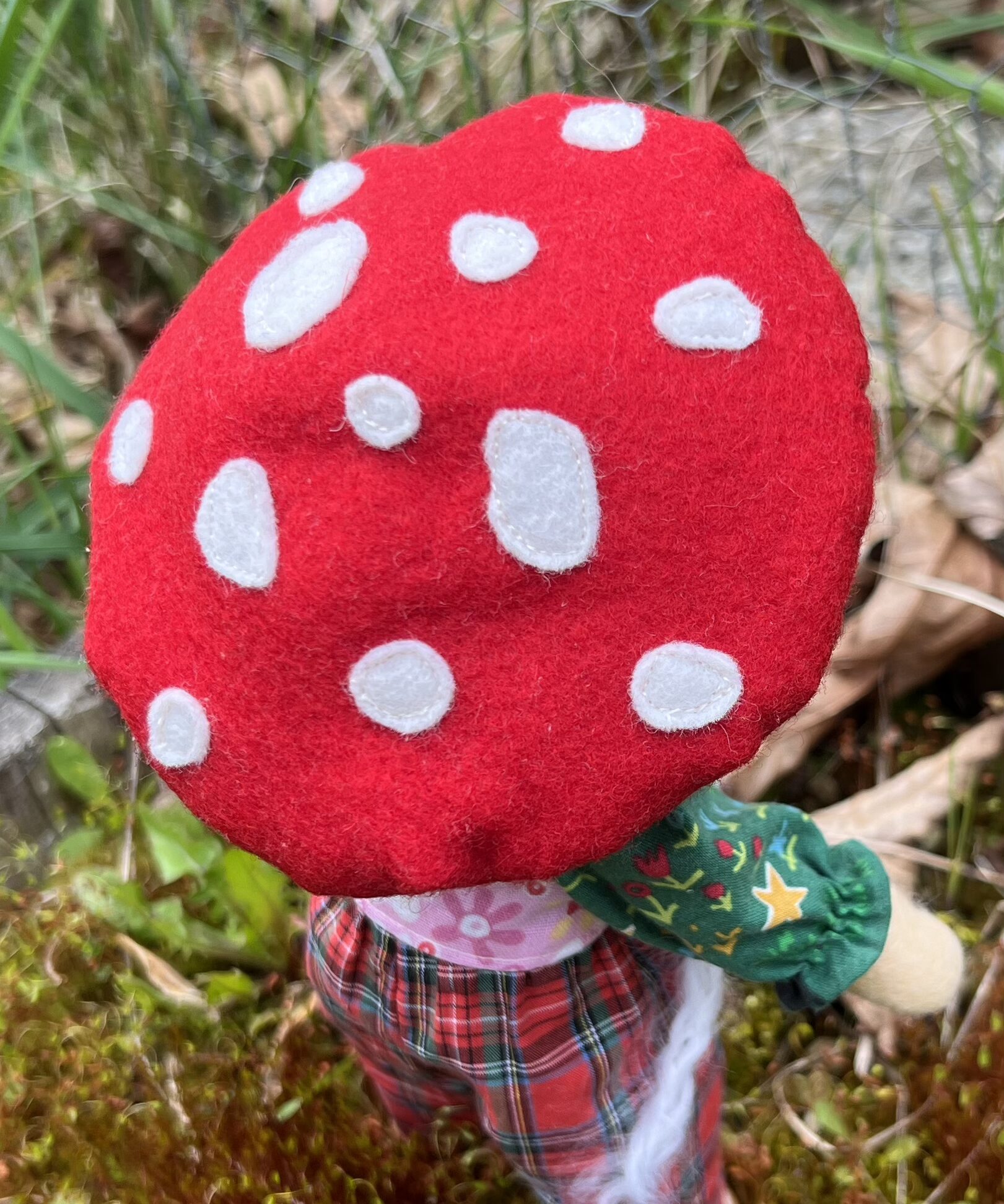 Mushroom Cap/Hat for my Brownie or Gnome dolls. Mushroom has a 13cm diameter with an internal cap that will fit a doll head with an approximately 15cm circumference